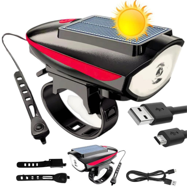 چراغ جلو دوچرخه بوق دار شارژی پنل خورشیدی