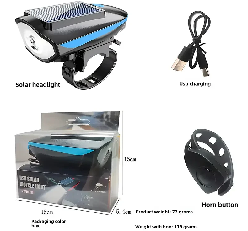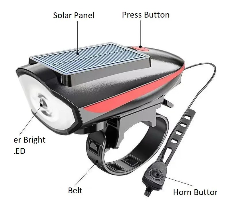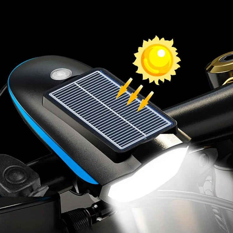 چراغ جلو دوچرخه بوق دار شارژی پنل خورشیدی